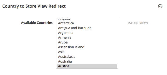 view, the store owner can also redirect the customer based on their country to a specified URL. This gives the store owner the ability to redirect the customers to an external URL if they do not use the multistore setup in